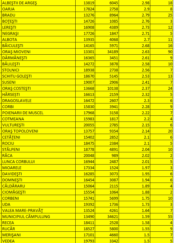 Alte 40 de localități argeșene sunt în scenariul galben: