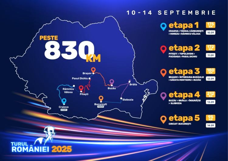 Mai multe informații despre Turul României 2025 puteți citi pe www.turulromaniei.ro și pe pagina oficială de Facebook https://www.facebook.com/tourofromaniaofficial.
