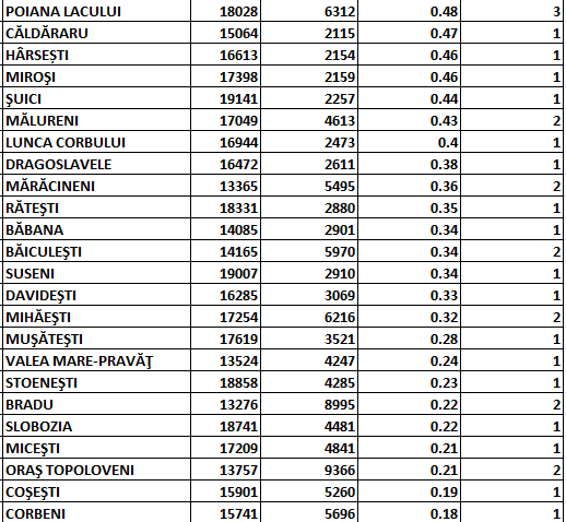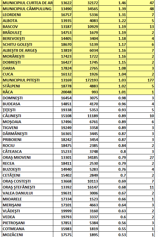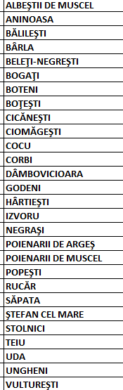 28 de localități din județul Argeș au în ultimele două săptămâni rată zero de infectare cu SARS-CoV-2, potrivit listei comunicate în această dimineață de Direcția de Sănătate Publică (pentru vizualizare, click pe imagine):