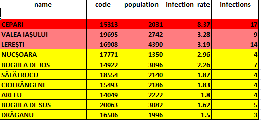 În Pitești, în ultimele 24 de ore rata de infectare a scăzut de la 1,15 la 1,03/1.000 de locuitori (click pe imagini pentru vizualizare):