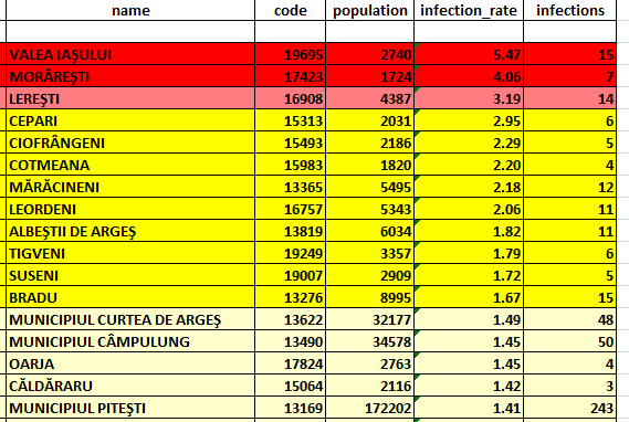 -scenariul galben: incidența cazurilor de infectare cumulată în ultimele 14 zile este între 1,5 și 3/1.000 de locuitori;
