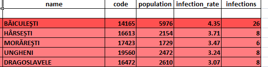 Potrivit Direcției de Sănătate Publică, 5 localități din județul Argeș se află acum în scenariul roșu din punct de vedere epidemiologic (click pe imagine pentru vizualizare):