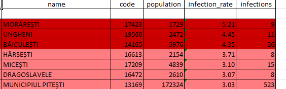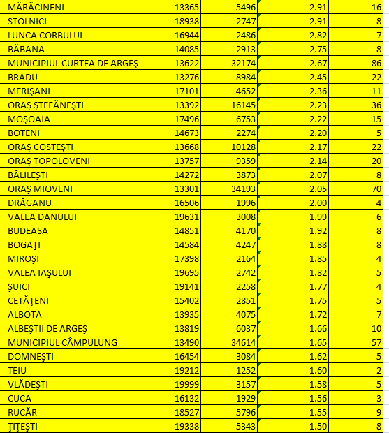 La această oră, 7 localități din județul Argeș sunt în scenariul roșu, potrivit Direcției de Sănătate Publică: