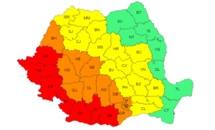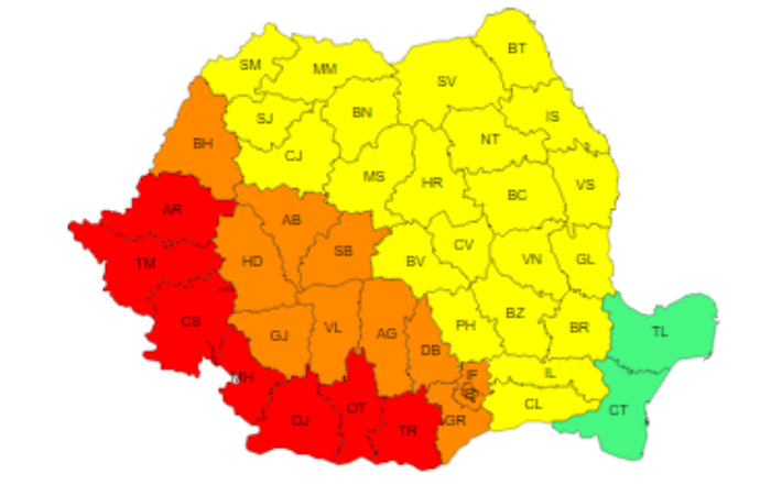 În județele Arad, Timiș, Caraș-Severin, Mehedinți, Dolj, Olt și Teleorman valul de căldură va fi persistent.