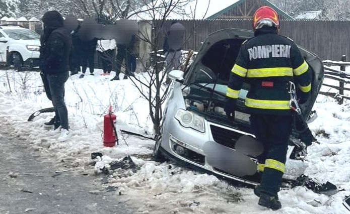 În urma impactului, autoturismul condus de femeie a ieșit în afara carosabilului, conducătoarea auto suferind leziuni.