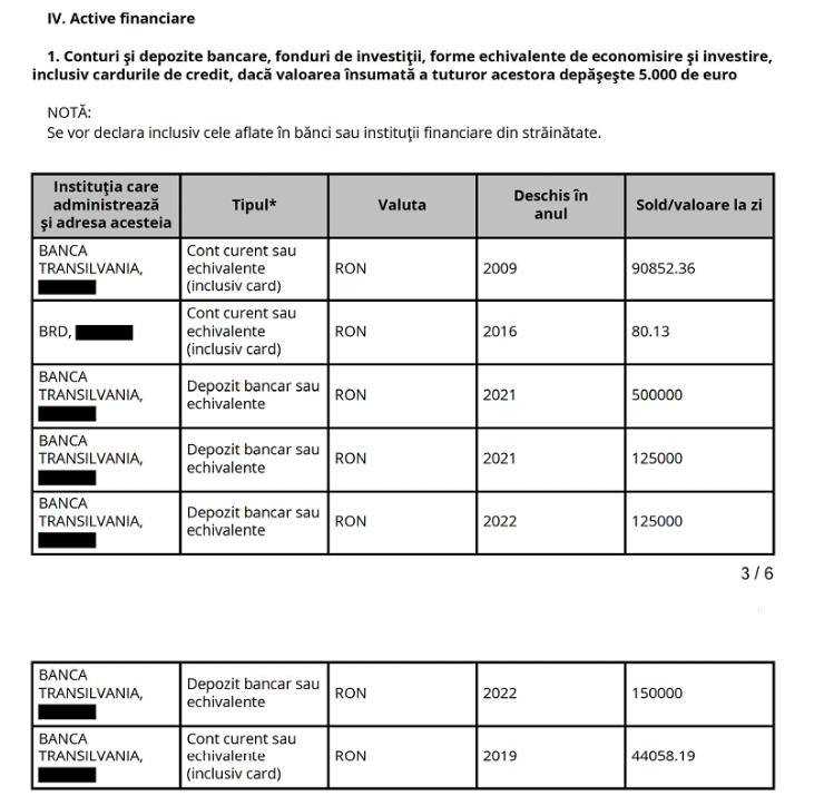 În total, parlamentarul argeșean are în bănci economii de peste 1.000.000 de lei (click pe imagine pentru vizualizare):
