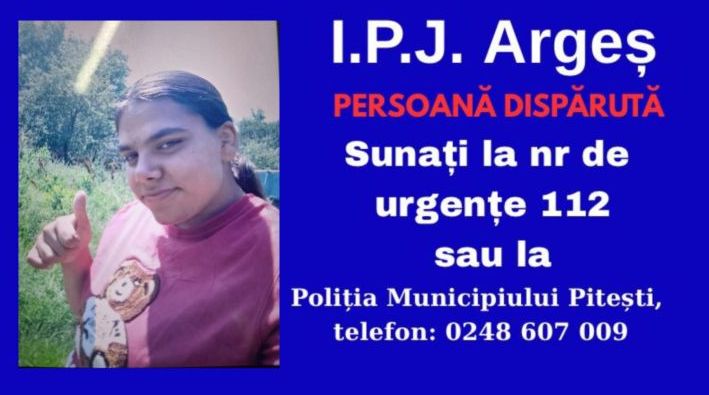 Persoanele care pot oferi informații cu privire la tânăra căutată sunt rugate să apeleze numărul unic de urgență 112 sau Poliția Municipiului Pitești, la telefon 0248.607.009.