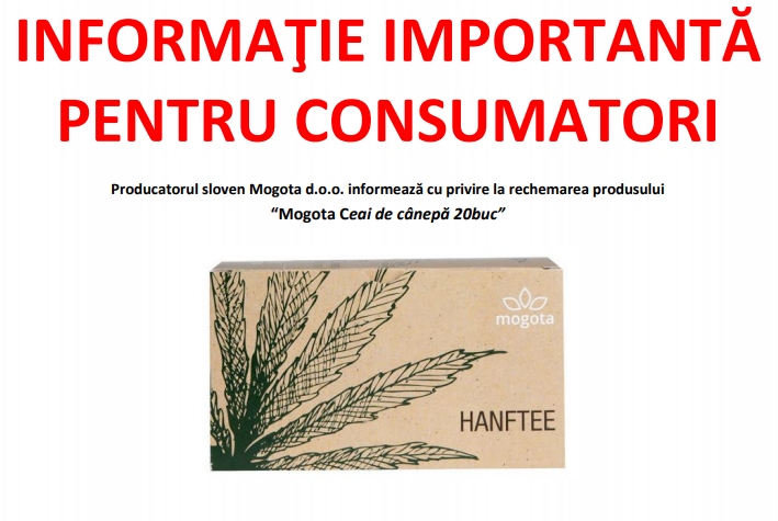 Retragerea vizează exclusiv produsul „Mogota Ceai de cânepă 20 buc.” al producatorului Mogota d.o.o. cu data de valabilitate minimă 31.12.2022.