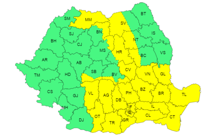Notă: astfel de fenomene se vor semnala pe arii restrânse și în restul țării.