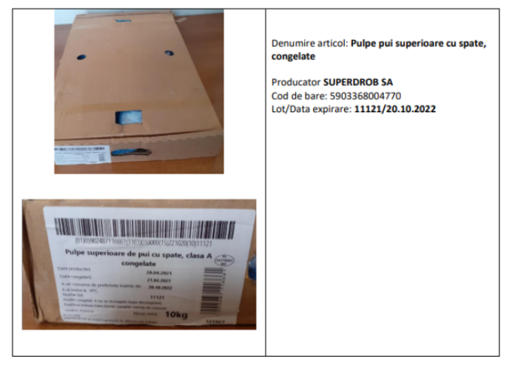 Metro Cash & Carry România a inițiat retragerea de la comercializare și rechemarea de la clienți a unui sortiment de pulpe de pui superioare cu spate, congelate, produs de Superdrob SA. Motivul: produsul este infestat cu Salmonella.