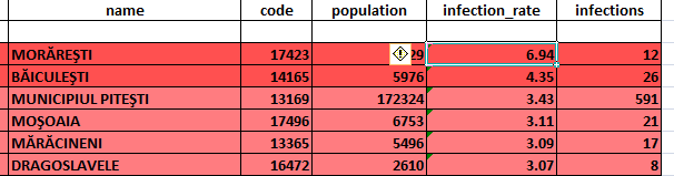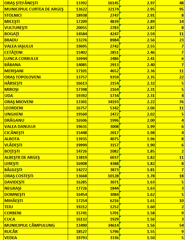 Lista localităților din județul Argeș care se află în scenariul galben: