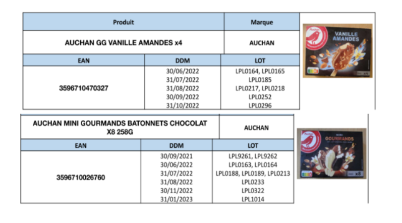 Pe de altă parte, ANSVSA anunță retragerea de la vânzare din mai multe hipermarketuri Auchan din țară, printre care și Auchan Găvana (Pitești) și Auchan Bradu, a unor loturi de înghețată Froneri: „Motivul retragerii este prezența accidentală a oxidului de etilenă – peste limitele permise de reglementările în vigoare – în compoziția ingredientelor din compoziția produselor.