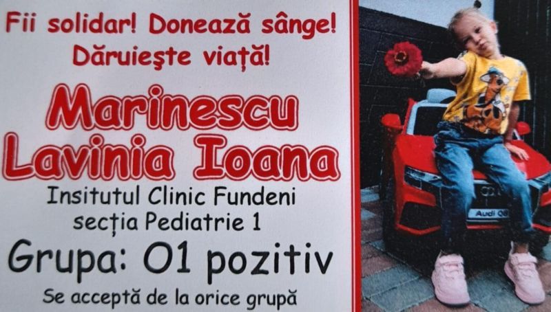 „Colegul nostru Marinescu Viorel are fata diagnosticată cu o boală gravă și are nevoie de ajutorul nostru. Cine dorește poate merge la orice centru de donare pentru a dona sânge, specificând „pentru Marinescu Lavinia Ioana, Institutul Clinic Fundeni, Secția Pediatrie”. Se acceptă orice grupă”, transmit reprezentanții Sindicatului Liber Dacia.