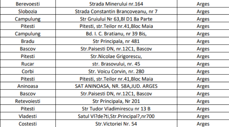 Lista magazinelor Profi din județul Argeș în care s-au aflat la vânzare aceste produse (click pe imagine pentru vizualizare):