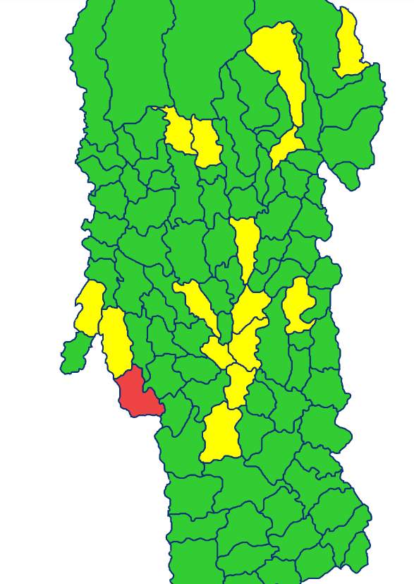 Numărul localităților din Argeș aflate în scenariul galben a crescut la 15, de la 11 ieri. În ultimele 24 de ore, au ieșit din scenariul verde municipiul Câmpulung și comunele Dâmbovicioara, Beleți-Negrești și Budeasa.