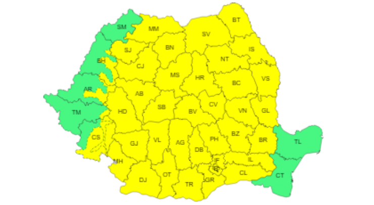 Avertizarea cod-galben de instabilitate atmosferică temporar accentuată va fi valabilă în paralel cu noile avertizări de caniculă, caniculă care a mai scăzut în intensitate – aici amănunte.