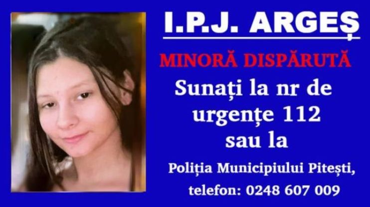 Persoanele care pot da relații cu privire la minora în cauză sunt rugate să apeleze Serviciul Național Unic Apeluri de Urgență 112 sau Poliția Municipiului Pitești, la numărul de telefon 0248.607.009″.