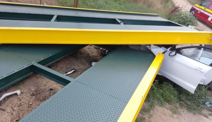 „Trei plăci de cântar care se aflau ancorate cu chingi pe un transporter-platformă care circula pe DJ 679, din direcția Lunca Corbului către Tufeni, într-o curbă strânsă, s-au desprins și au căzut peste un autoturism, condus, din sens opus, de un tânăr de 24 de ani. Au fost raniți conducătorul auto de 24 de ani și pasagera, de 19 ani”, ne informează Poliția Argeș.