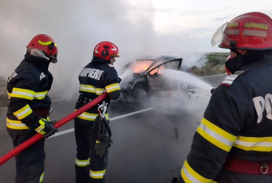 Un autoturism a luat foc în mers, în această seară, pe drumul județean 703B, în apropiere de orașul Costești.
