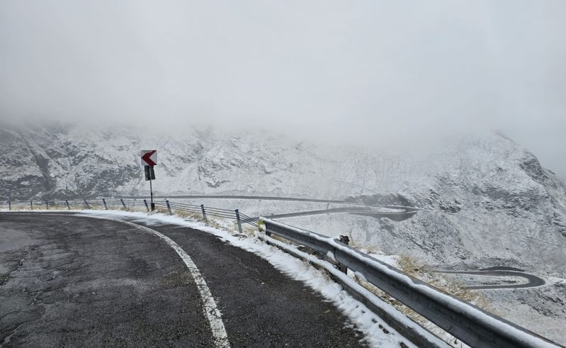 În zona montană înaltă a județului Argeș, pe Transfăgărășan – prima ninsoare din noul sezon rece.