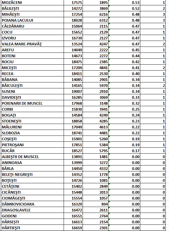 Situația epidemiologică pentru fiecare localitate din județul Argeș a fost actualizată în urmă cu puțin timp. Direcția de Sănătate Publică a comunicat lista integrală.