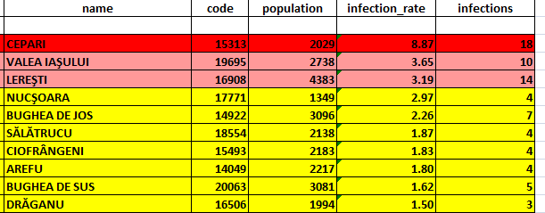 -scenariul galben: incidența cazurilor de infectare cumulată în ultimele 14 zile este între 1,5 și 3/1.000 de locuitori;