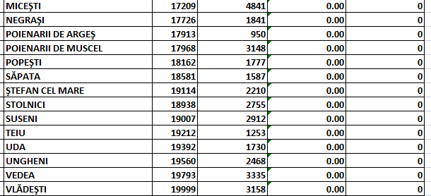 În scenariul roșu se mai află 3 localități: comunele Cepari, Valea Iașului și Lerești. Scenariu galben mai este în 7 localități: comunele Nucșoara, Bughea de Jos, Sălătrucu, Ciofrângeni, Arefu, Bughea de Sus și Drăganu.