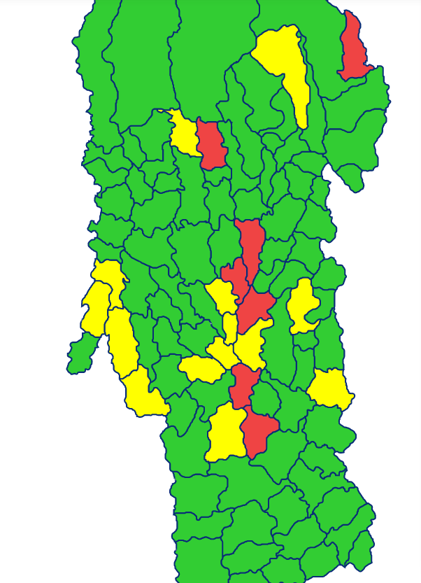 Alte 3 localități din Argeș au intrat astăzi în scenariul roșu: orașul Mioveni (cu o rată de incidență de 3,02/1.000 de locuitori) și comunele Suseni (3,43) și Dârmănești (3,19). Acestea li se alătură celorlalte 4 (toate comune) care erau deja în scenariul roșu: Bălilești (5,16), Bradu (cu o rată de infectare în creștere, de la 3,36 ieri la 3,58/1.000 de locuitori astăzi), Dâmbovicioara (3,33) și Corbi (3,30/1.000 de locuitori).