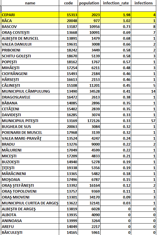 Încă puțin și toate localitățile din județul Argeș se vor afla în scenariul verde din punct de vedere epidemiologic. Mai există o singură excepție: comuna Cepari, care, deocamdată, a rămas în scenariul galben.