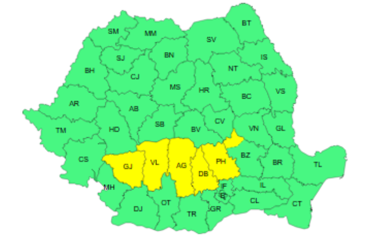 Județul Argeș este vizat de o avertizare-cod galben de ploi abundente, emisă cu puțin timp în urmă de Administrația Națională de Meteorologie (ANM). Avertizarea va intra în vigoare la noapte.
