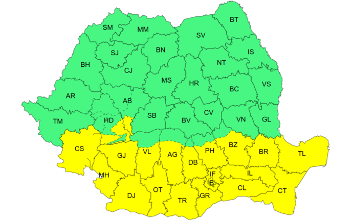 Interval de valabilitate: 5 decembrie, ora 10:00 – 6 decembrie, ora 22:00. Fenomene vizate: intensificări temporare ale vântului.