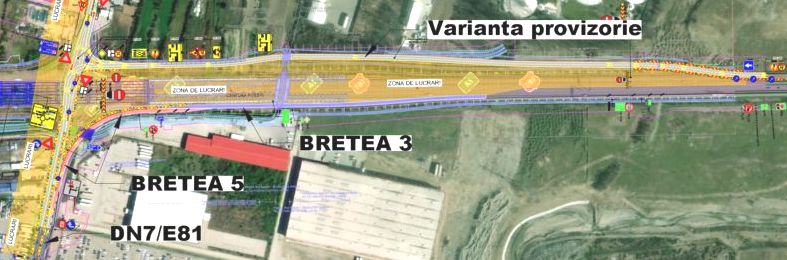 De asemenea, sensul de urcare pe autostradă (spre București) de pe varianta provizorie va fi desființat pentru executarea lucrărilor la Breteaua 4 a Nodului rutier Bascov.