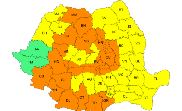 În județele Caraș Severin, Hunedoara, Cluj, Mureș, Bistrița Năsăud, Maramureș și Covasna, precum și la munte vor fi averse importante cantitativ, frecvente descărcări electrice, intensificări ale vântului (rafale de 50…70 km/h) și grindină de medii dimensiuni (3-4 cm).