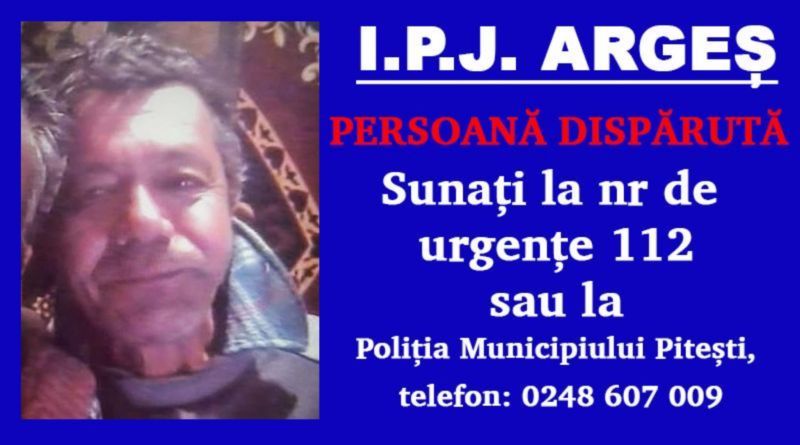 Persoanele care pot oferi relații cu privire la bărbatul în cauză sunt rugate să apeleze la Serviciul Național Unic Apeluri de Urgență 112 sau la Poliția Municipiului Pitești, la telefon 0248.607.009”.