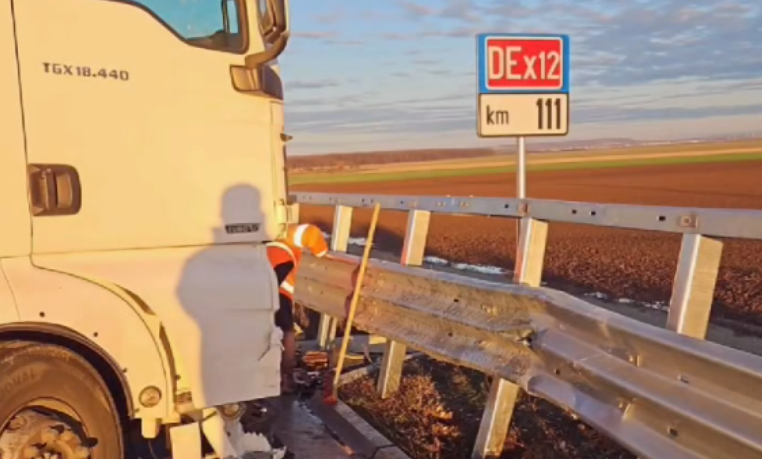În această dimineață, circulația pe sensul de deplasare spre Slatina a fost total blocată din cauza unui autotren rămas imobilizat pe suprafața de rulare în zona km 111. Șoferul autotrenului, autotren încărcat cu sucuri, a pierdut controlul asupra volanului (cauza urmează să fie stabilită) și a intrat în coliziune cu parapetul median. Nu au fost victime.
