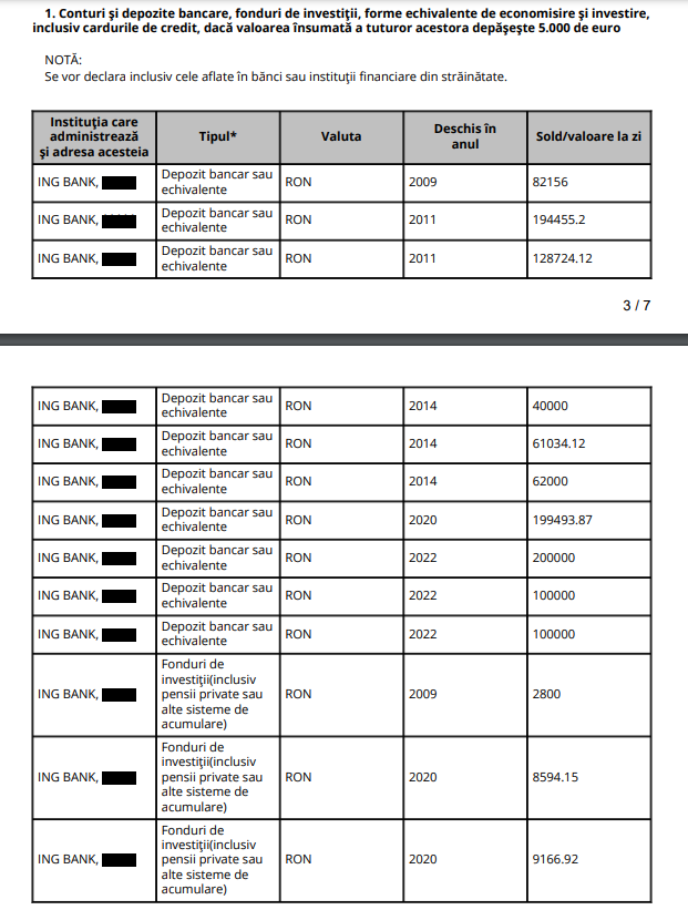 Potrivit declarației sale de avere, anul trecut a economisit și a depus la ING Bank un total de 400.000 de lei.
