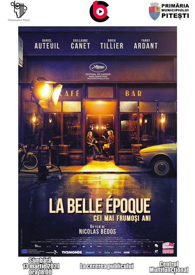 Sâmbătă, 13 martie 2021, de la ora 18:00, la Cinematograful de artă „București” va fi reproiectat filmul „La Belle Epoque”, cu Daniel Auteuil, Guillaume Canet, DoriaTillier, Fanny Ardant și Pierre Arditi în rolurile principale, în regia lui Nicolas Bedos.
