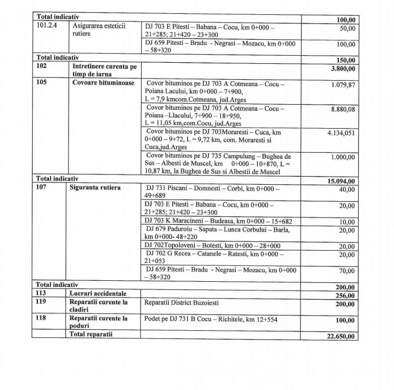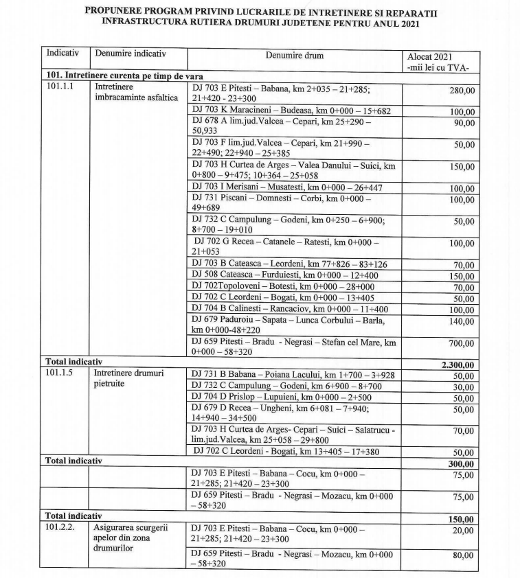 Consiliul Județean Argeș a redactat lista drumurilor județene pe care ar urma să se efectueze lucrări de reparații pe parcursul anului 2021. Lista va fi supusă dezbaterii și votului într-o viitoare ședință în plen a Consiliului Județean.