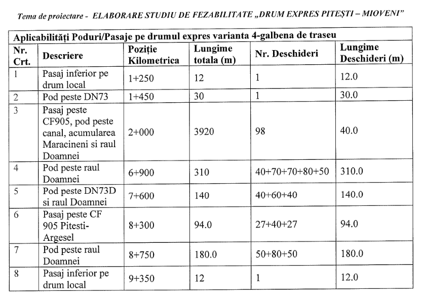 Pe traseul viitorului drum expres Pitești-Mioveni ar urma să fie construite mai multe poduri și pasaje rutiere, potrivit temei de proiectare pe care a aprobat-o ieri Consiliul Județean (CJ) Argeș.