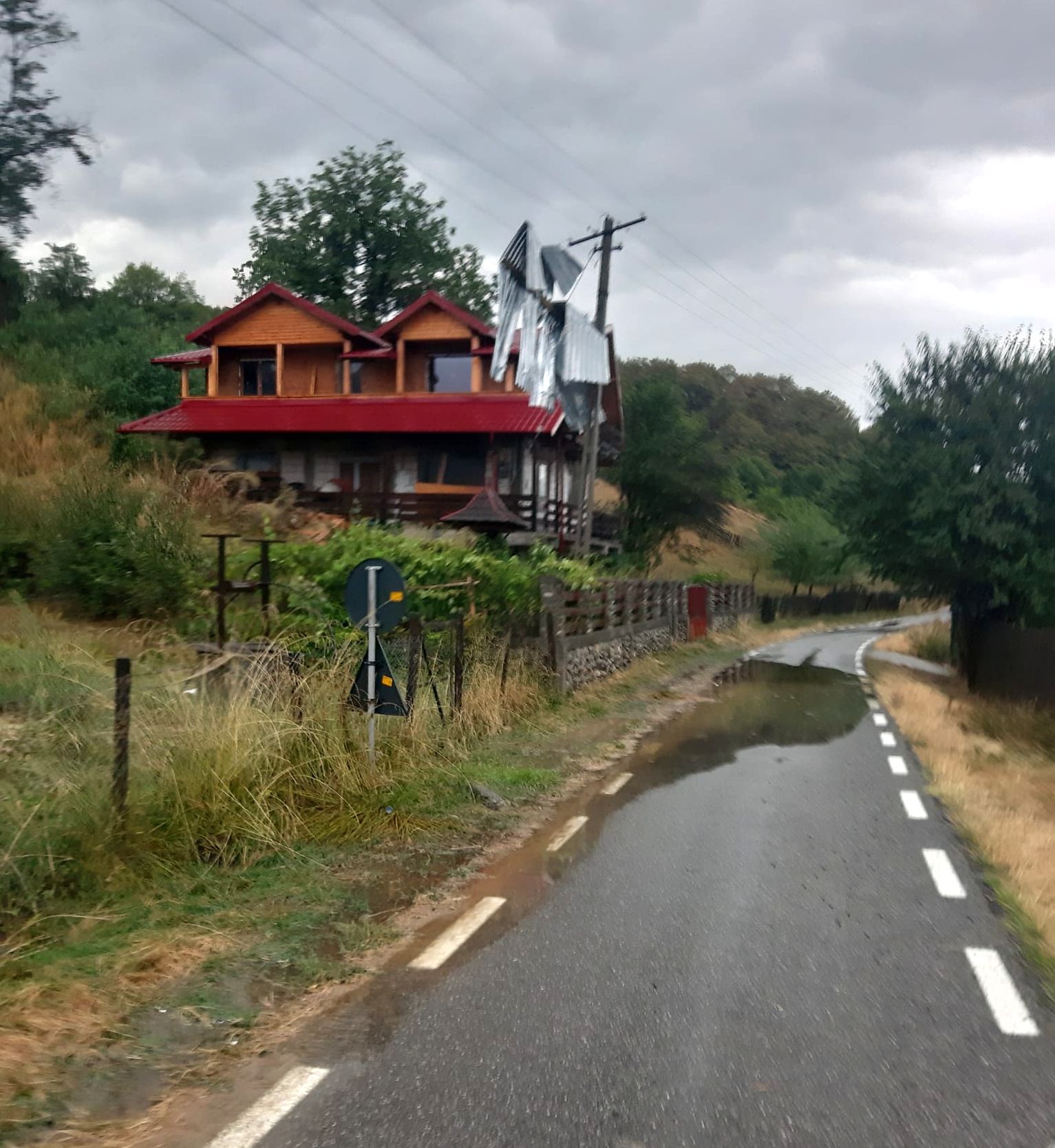 În comuna Corbi, acoperișul unui imobil a fost smuls de vânt (foto):