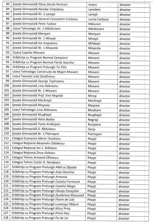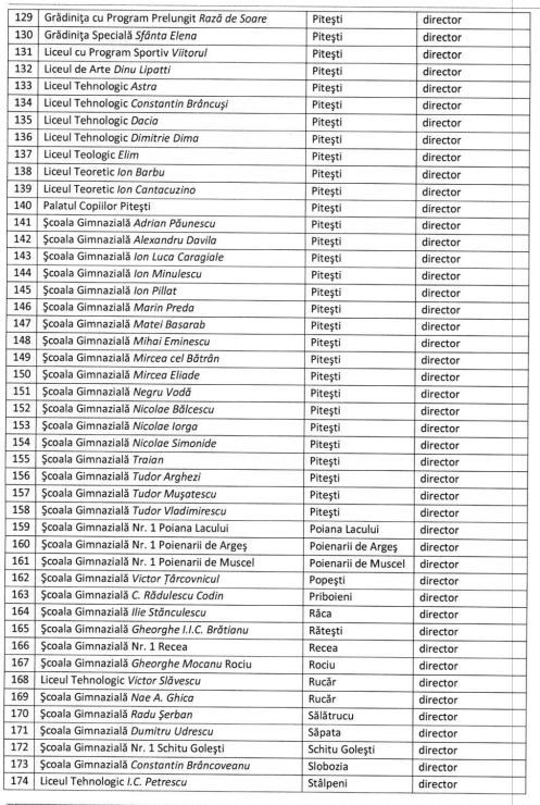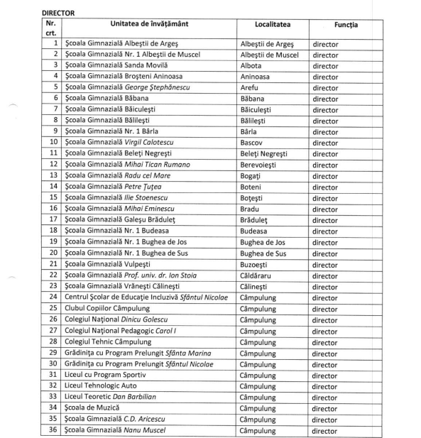 Inspectoratul Școlar a publicat lista funcțiilor vacante de director și director adjunct la unitățile de învățământ preuniversitar din județul Argeș, funcții pentru ocuparea cărora va fi organizat concurs.