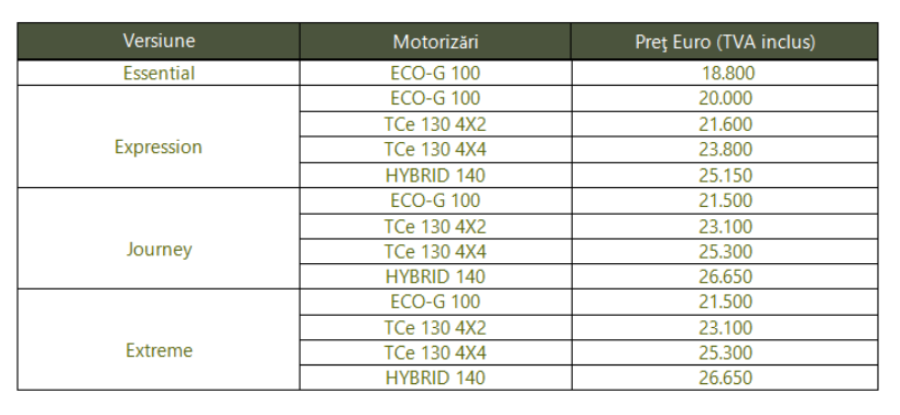 Dacia a anunțat astăzi prețurile de comercializare în România pentru Noul Duster. Cea mai ieftină versiune va costa 18.800 de euro, iar cea mai scumpă, 26.650 de euro. Iată toate prețurile, comunicate de Dacia (click pe imagine pentru vizualizare):