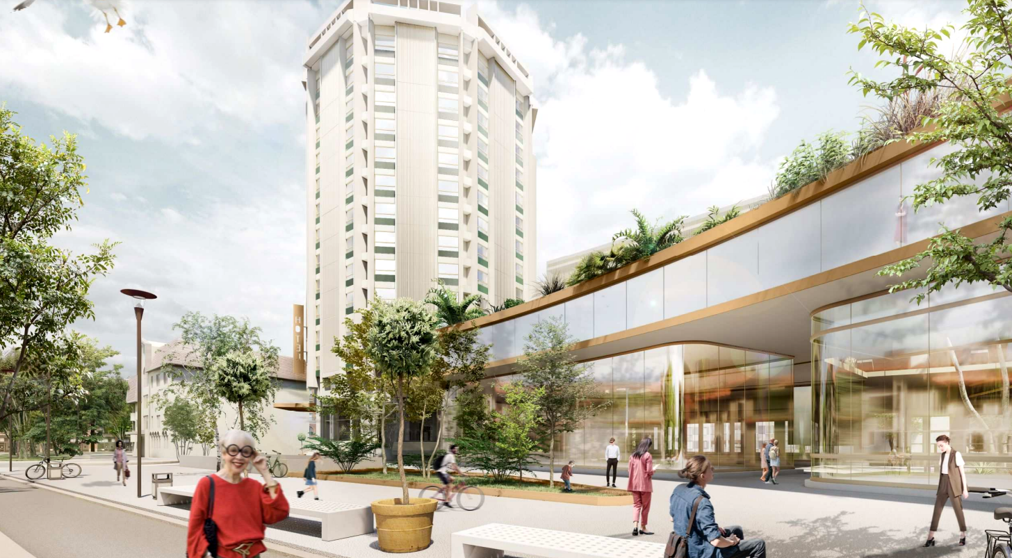 Principala schimbare propusă constă în construirea unei noi clădiri, care să aibă utilitate de centru comercial, o clădire din sticlă.