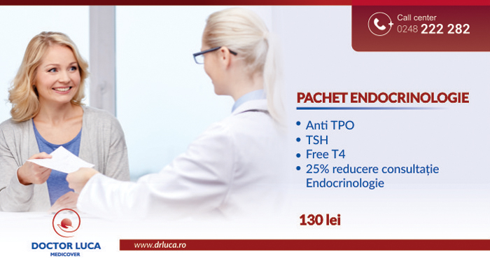 Dacă vii cu analizele la un medic endocrinolog tot de la Centrul Medical Doctor Luca Medicover din Pitești, beneficiezi de o reducere de 25% din prețul consultației.