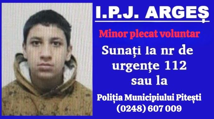 ”La data de 29 noiembrie 2025, în jurul orei 01:30, Secția 4 Poliție Pitești a fost sesizată de un reprezentant al Centrului de tip familial ”Dumbrava minunată” din Pitești cu privire la plecarea voluntară a minorului Burulea Darius-Marius, în vârstă de 15 ani.