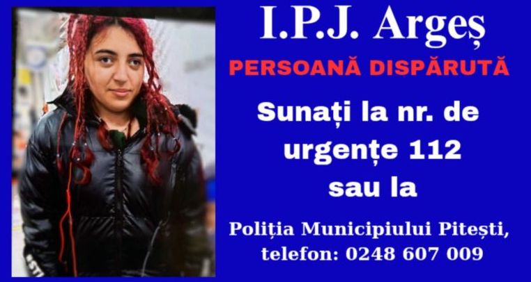 Persoanele care pot oferi informații despre tânără sunt rugate să anunțe Serviciul Unic de Urgență 112 sau să ia legătura cu Poliția Municipiului Pitești, la numărul 0248.607.009”.