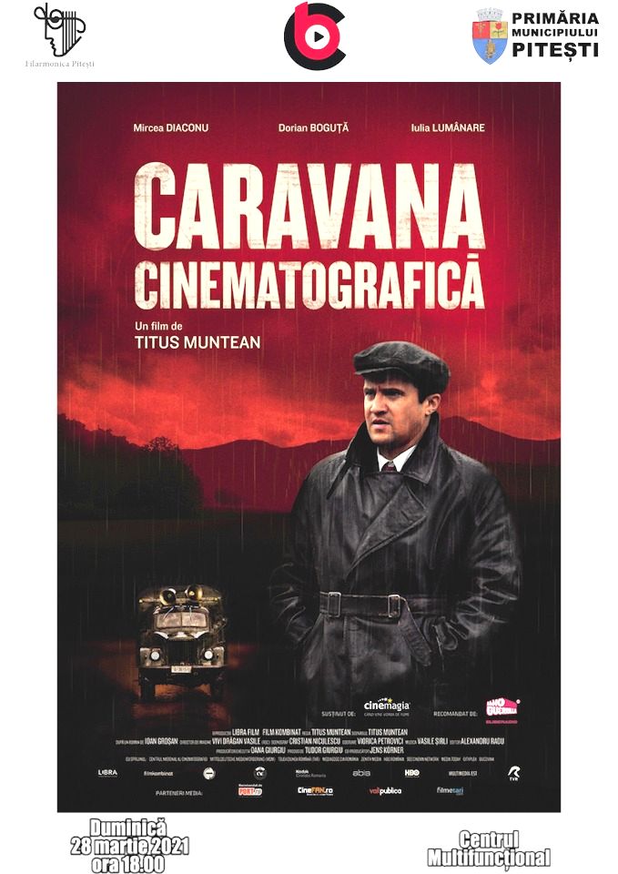 Duminică, 21 martie, tot de la ora 18:00, la Cinematograful „București” va fi difuzat filmul „Caravana cinematografică”. Regia îi aparține lui Titus Muntean, în rolul principal jucând Mircea Diaconu.