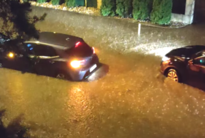 Mai multe străzi au fost inundate, capace de la canalizare au sărit sub presiunea apei acumulate și au căzut copaci și brazi înalți.