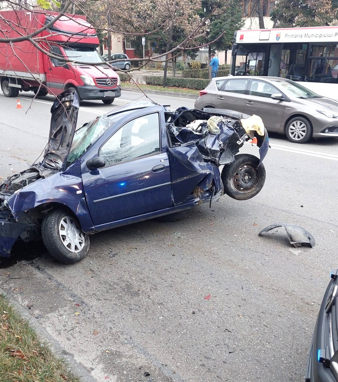 Biroul de presă al Poliției Argeș face precizări: „Din verificările preliminare efectuate de polițiștii Biroului Rutier Pitești s-a stabilit că un bărbat de 39 de ani din județul Constanța care conducea un ansamblu de vehicule pe bulevardul Petrochimiștilor din Pitești, în împrejurări care vor fi stabilite în urma cercetărilor, ar fi acroșat un autoturism, condus în aceeași direcție de mers de o tânără de 18 ani din Pitești.
