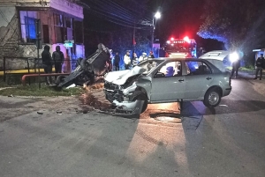 Două autoturisme au intrat aseară în coliziune într-o intersecție din comuna Lerești. În urma impactului, unul dintre autoturisme s-a răsturnat pe plafon, în afara părții carosabile.